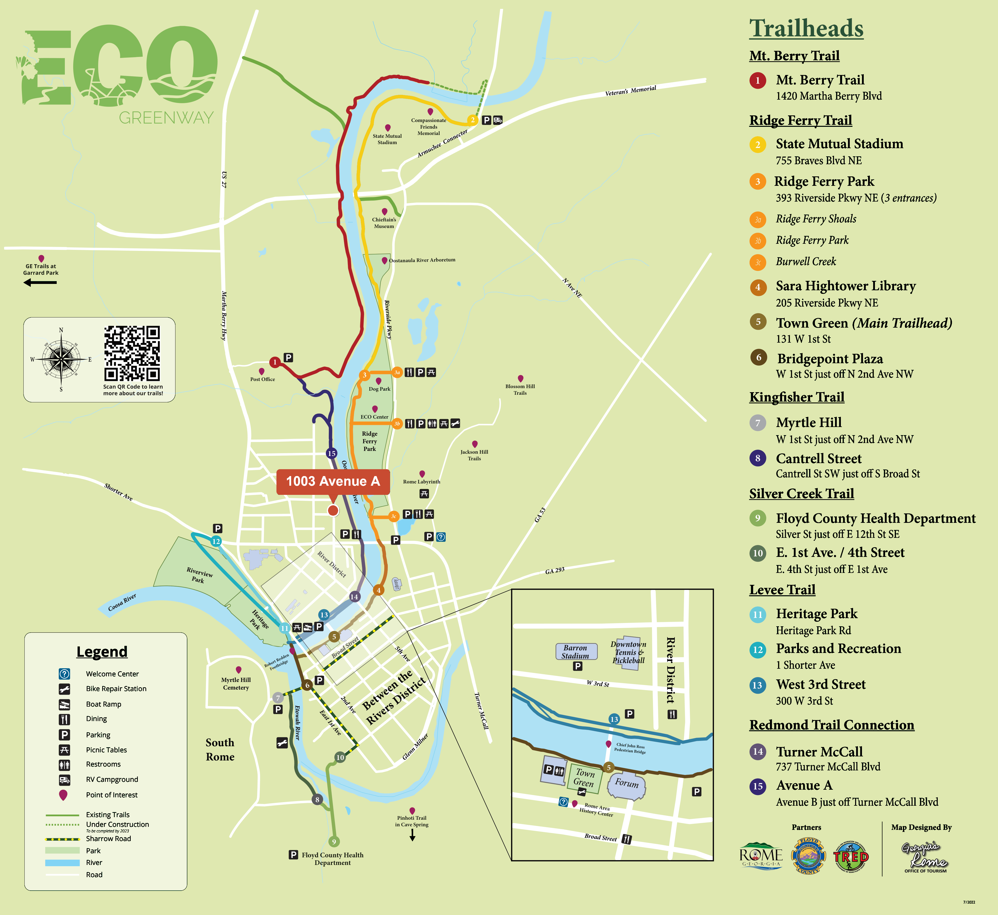 The ECO Greenway connects you to Ridge Ferry Park, the River District, and miles of scenic trail along the Oostanaula and Etowah rivers.